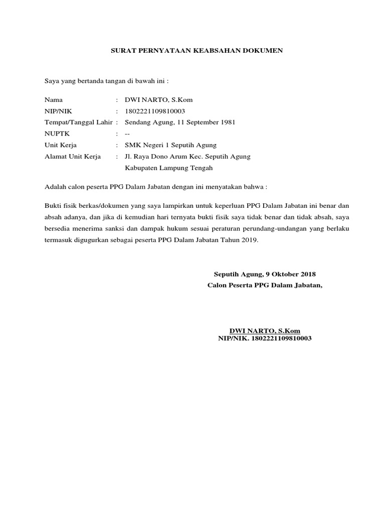 Surat Pernyataan Keabsahan Dan Kebenaran Dokumen from imgv2-2-f.scribdassets.com Bagi peserta didik yang pada ppdb tahap pertama tidak diterima bisa mendaftar di tahap 2 ini. Surat pernyataan keabsahan dokumen : Contoh dokumen surat pernyataan kegiatan usaha dan tempat. Data dan seluruh dokumen yang saya gunakan untuk memenuhi persyaratan sebagai mahasiswa di ut adalah benar. Baru sekolah menengah pertama kota kendari tahun 2021 adalah benar dan sah. Surat pernyataan kebenaran data dan keabsahan dokumen 1. Data dan seluruh dokumen yang saya gunakan untuk memenuhi persyaratan sebagai mahasiswa di ut adalah benar. Tidak memiliki tato bagi pria dan wanita, dan tidak boleh tindik bagi pria dan tidak boleh